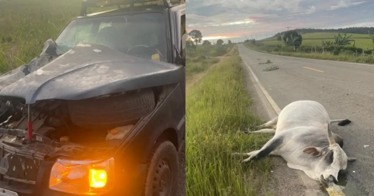 Nesta última sexta-feira (28), um boi foi atropelado por um carro modelo Fiat Uno enquanto transitava na pista da BA-250.