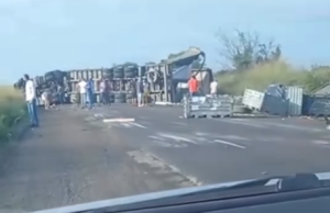 Caminhão tomba e interdita totalmente a BR-116 em direção a Feira de Santana