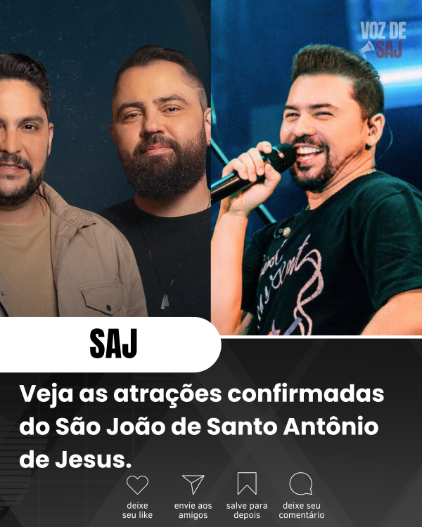 ByVoz de Sajmarço 28, 2025O prefeito Genival Deolino confirmou novas atrações para o São João de Santo Antônio de Jesus. Saiba as atrações: Jorge e Mateus Ana...