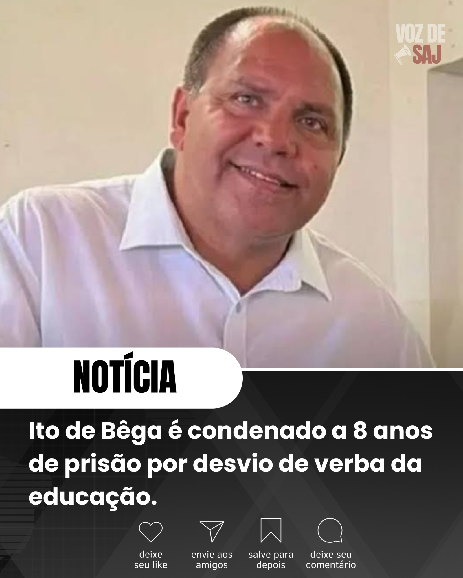 O Superior Tribunal de Justiça (STJ) confirmou a condenação Adailton Campos Sobral, mais conhecido como Ito de Bêga, ex-prefeito de Conceição de Almeida a 8 anos e 8 meses de prisão.