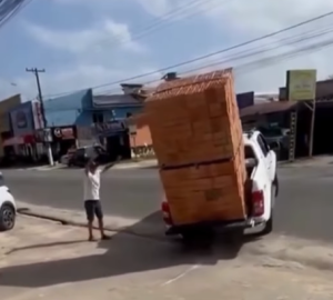 Um motorista no Maranhão acabou transformando uma tentativa de economia em um grande prejuízo. Para evitar pagar R$ 10 de frete, ele decidiu transportar sozinho um milheiro de tijolos em sua caminhonete 4×4. Porém, o veículo não suportou o peso e a carga acabou se espalhando pela rua.