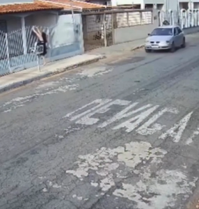 Com o impacto, o portão se abriu e a vítima conseguiu entrar na residência. O motorista ainda manobrou o veículo e deu marcha à ré em direção à garagem, mas acabou desistindo e deixou o local.