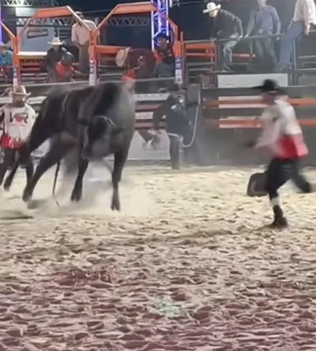 Imagens impressionantes do acidente viralizaram nas redes sociais e mostram o desespero da equipe de apoio tentando conter o animal e prestar socorro imediato ao jovem.